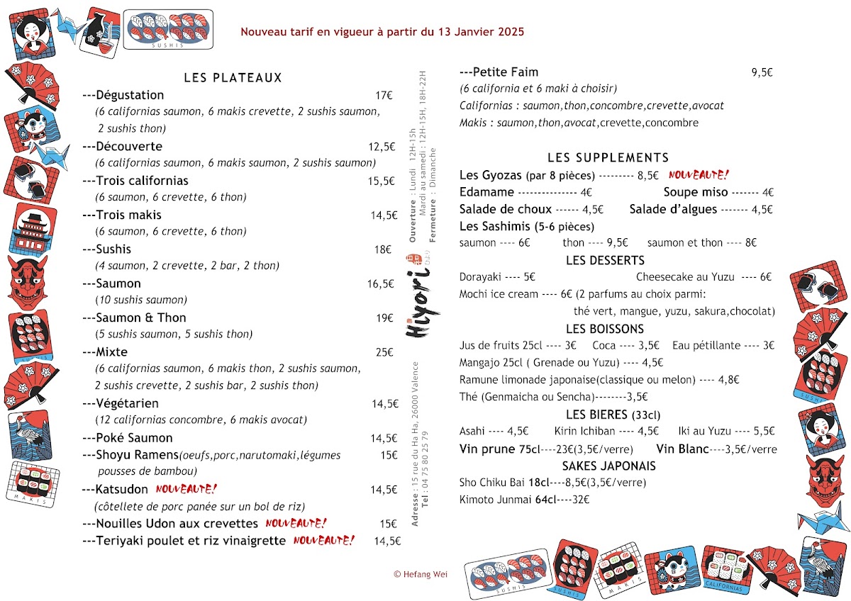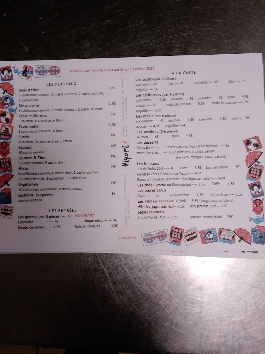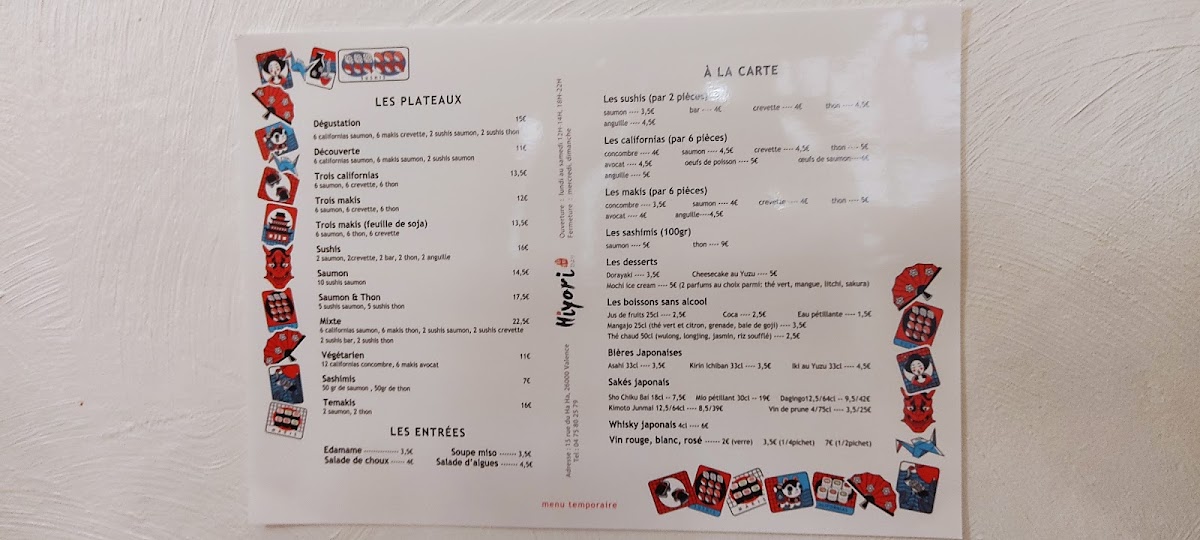 Welcome to Hiyori, a culinary gem nestled in Valence, France, at 15 Rue du Ha Ha. This delightful restaurant specializes in sushi, dumplings, and ramen, making it a versatile destination for all lovers of Japanese cuisine.